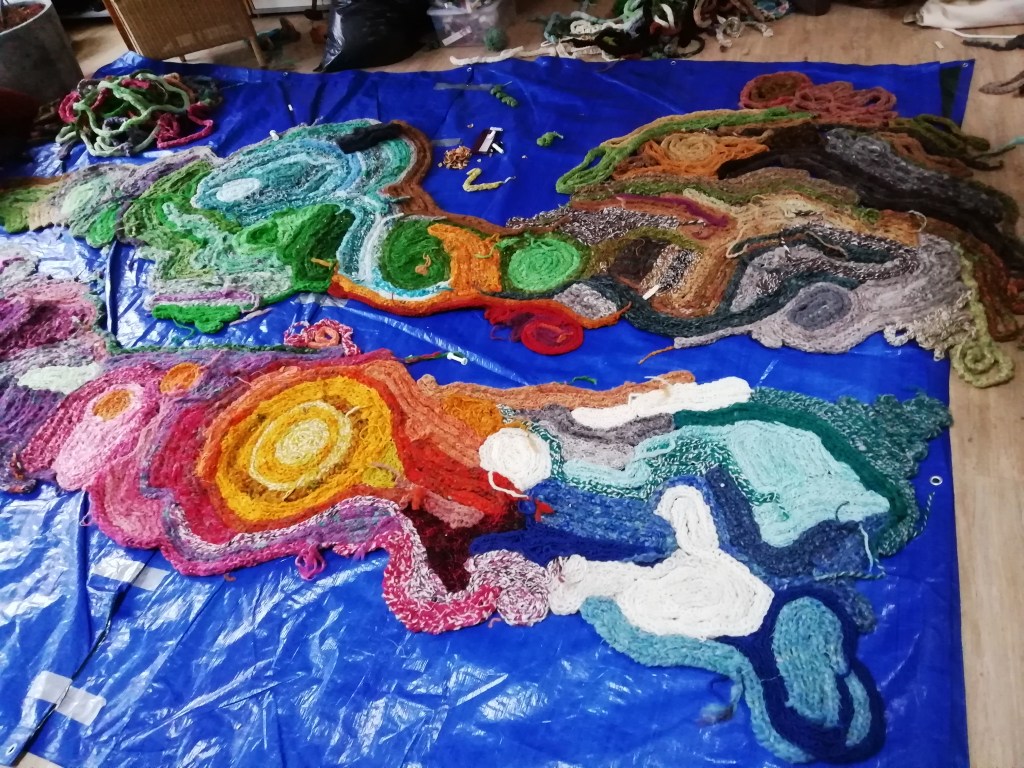 After months of spinning, painting and crocheting, I finally have enough material to make my big work.