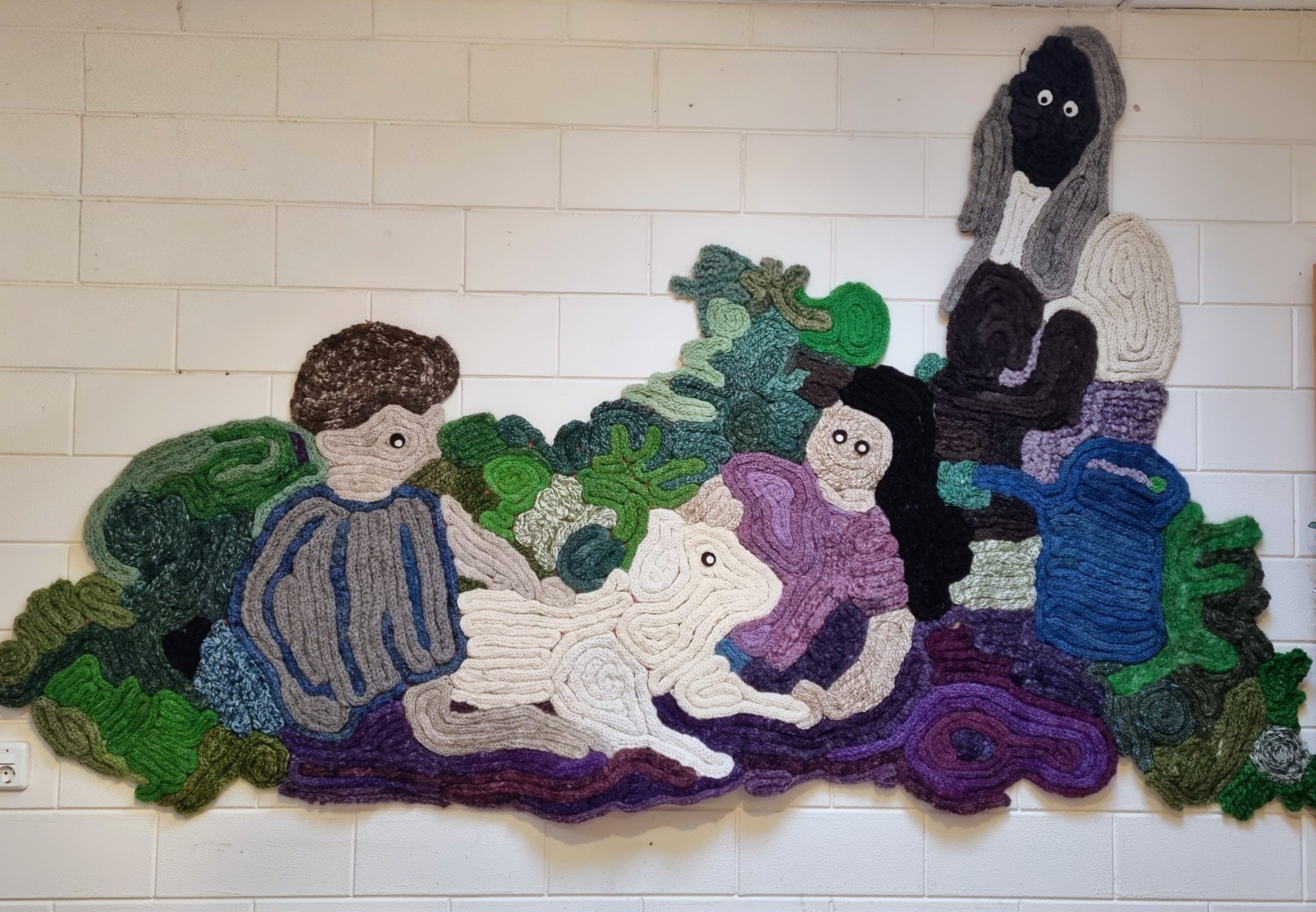 Hello, my name is Tineke Schonck, I am a textile artist mainly working with wool. I am living in the Netherlands, with my husband and daughter of 16, and with our ever-curious dog Yente.